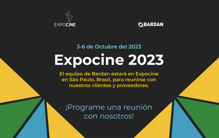 Bardan estará presente en Expocine 2023, del 3 al 6 de Octubre. Nos encantaría reunirnos con todos nuestros clientes y proveedores. Puede comunicarse con nosotros al +1-305-606-7660 por mensaje de texto o Whatsapp para concertar